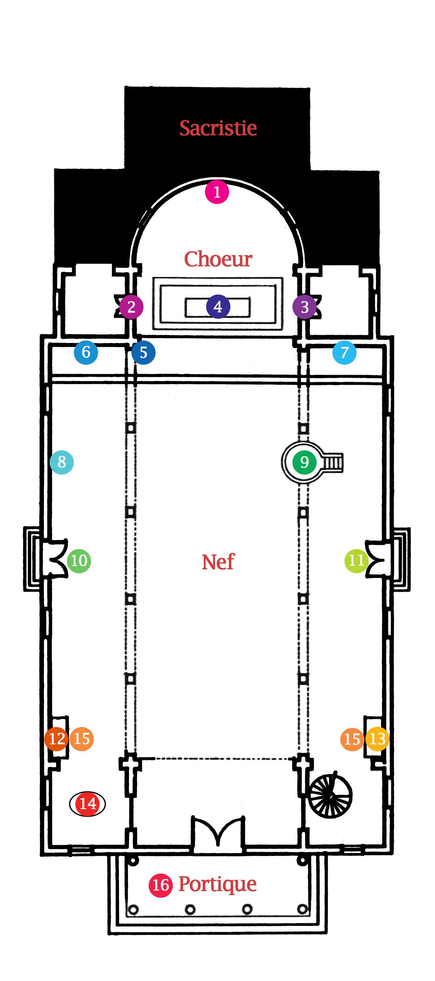 La toile marouflée date de 1904. Elle est l'œuvre de l'abbé MOIROT, élève de PUVIS DE CHAVANNE. Elle résume toute l'histoire de France qui va de la Gaule païenne à Napoléon. C'est une manière de nous rappeler que nos origines viennent de tous les coins du monde.