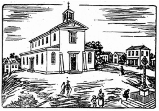 En 1700 la première pierre d'une nouvelle église dédiée à Saint Denis est posée, aux environs de la chapelle Saint Louis. L'église semble terminée en 1705. Il s'agit d'une petite église en maçonnerie, couverte d'un toit en paille. Elle sert au culte jusqu'en 1756.