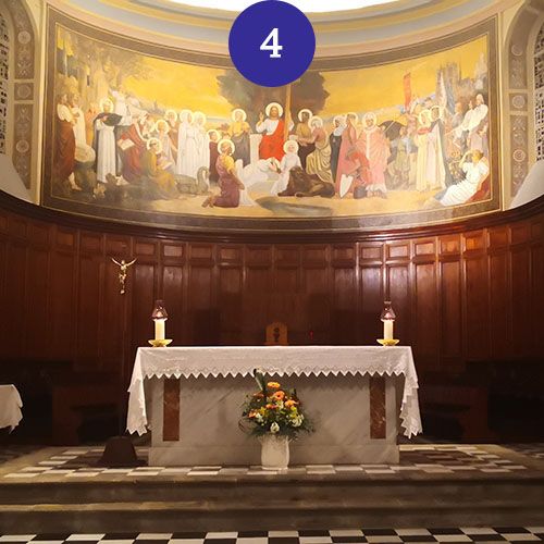 Toile marouflée de l'histoire du Christianisme en France. Réalisée par l'Abbé Moirod et placée en 1905. Les vitraux ont été réalisés par le Maître-Verrier Henri Martin-Granel en 1956
