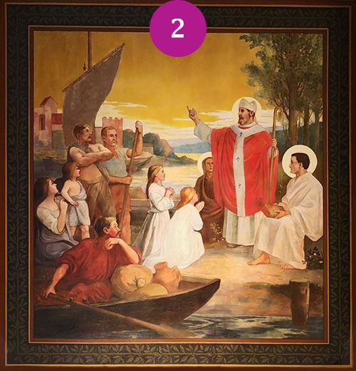 Toile marouflée réalisée par l'Abbé Moirod - Saint Denis prêchant à la population de Lutèce et aux bateleurs de la Seine